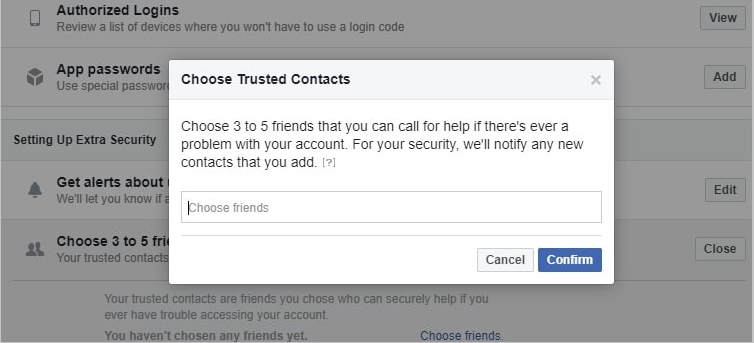 According to this feature, you to add trusted friends from your friends list as nominees, in case you got locked out of your Facebook account. These nominated friends can help you regain your Facebook account, in an unexpected event, like your Facebook account getting locked. Similarly, in case your Facebook account is hacked, and you are not able to log in to your account despite multiple attempts, your nominated friends can help you to log in to your account and update the security settings without much hassle. It is therefore an important feature in secure your Facebook account data.